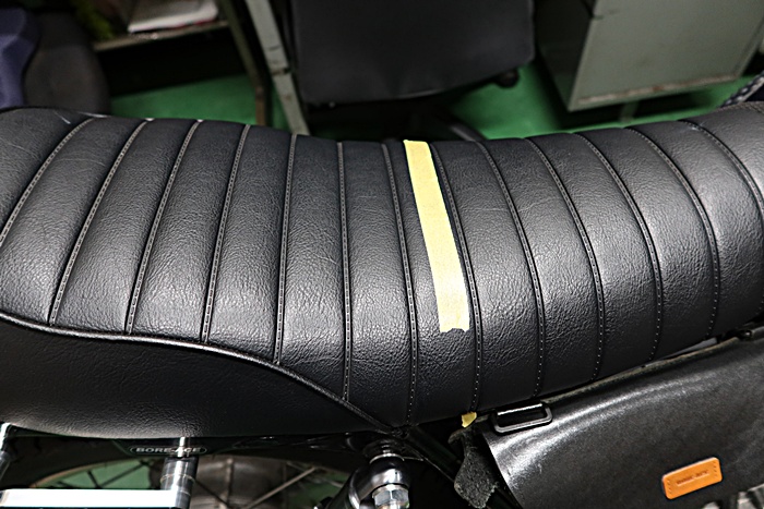 シートを外してもらって フレームのこの辺りに マスキングテープで 印を付けます