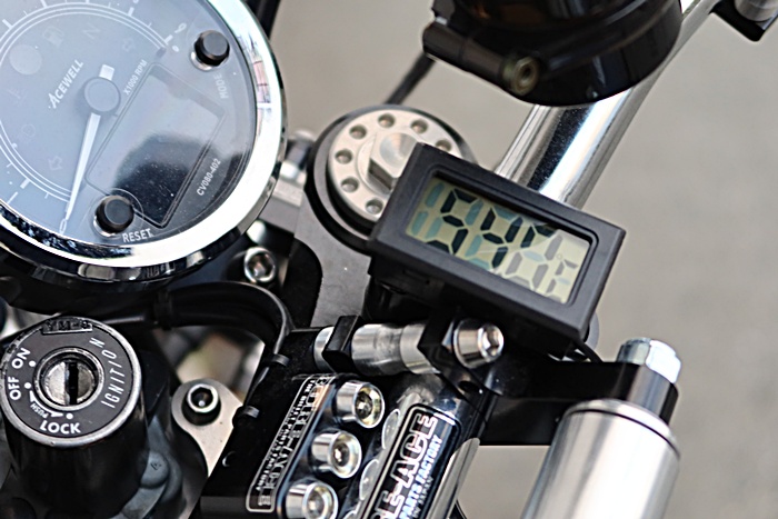 実際にテンプメーターを タンクの隙間に線を通して取り付けてみる事に