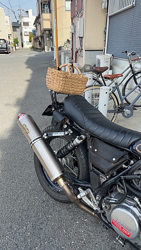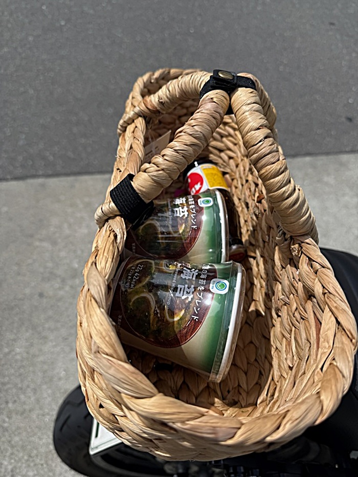 バーを2本作って 無印で買ってきたかごを取り付け(魔法のバンドで)