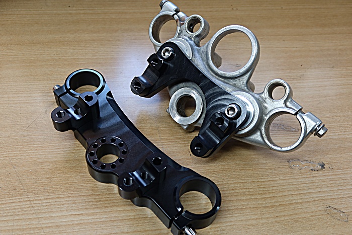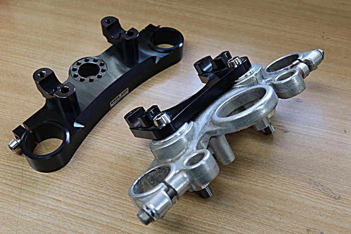 画像の黒色の製品は BORE-ACE 特殊ステムキットのトップブリッジになります